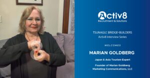TSUNAGU: To Connect. Whether it is connecting employers to job seekers or bringing different cultures together, we at Activ8 value the bridge-builders who make our world a better place every day. Our new series, TSUNAGU, will feature inspirational people who connect the U.S. and Japan through business, education, art, culture and more.