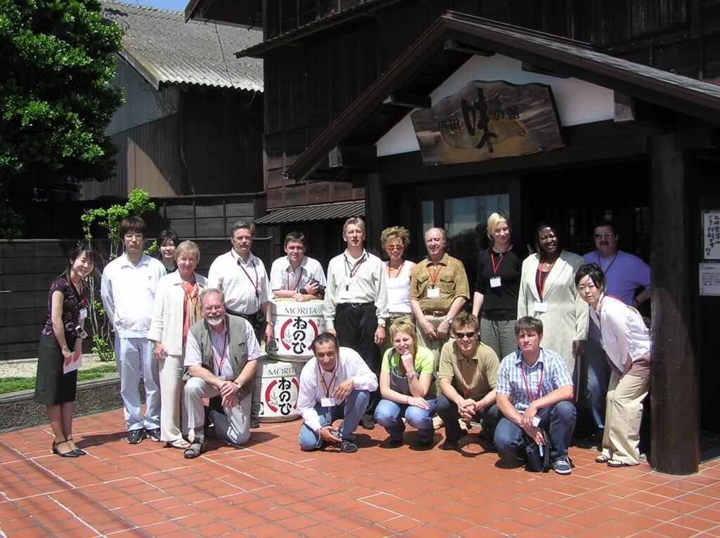 写真)万博パビリオンスタッフを引率して「ねのひ」の酒蔵へ