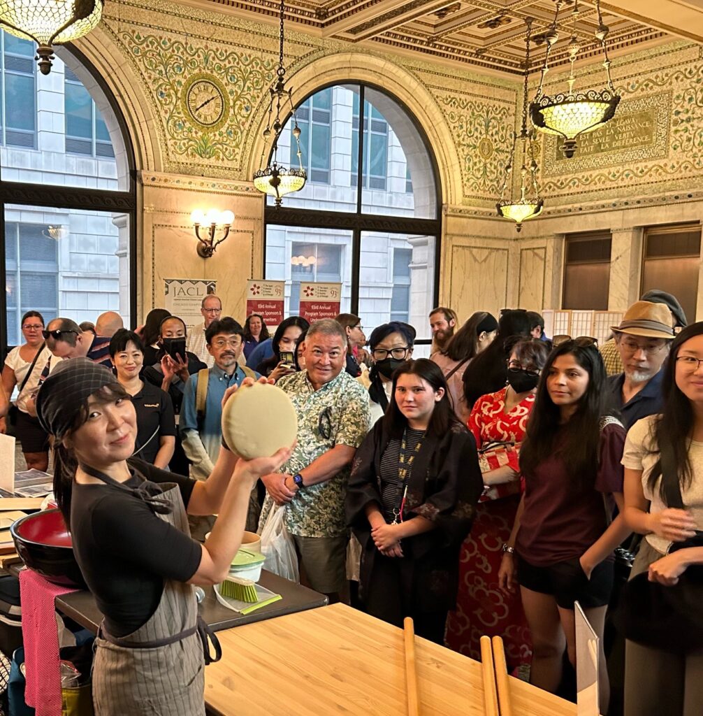 国際交流で人と人を繋ぐ事が大好きだという真理子さん。普段は人事のプロとして社員教育や日本本社とシカゴを繋ぐ役割も担っているとの事。人事も蕎麦打ちも「人を繋ぐ」面白さがあるそうです。特に蕎麦打ちは、コロナ禍後だからこそ一層、お客さんの反応が直に伝わってくるライブのパフォーマンスの有り難さを感じるそうです。今後は「蕎麦をより広くアメリカ社会に紹介していきたい」と希望しています。「今までに無かったような食べ物と蕎麦を組み合わせて提供したり、多種多様なコラボの機会を増やしていきたい」と意気込みを話します。また、将来的には親子で楽しめるような蕎麦打ち教室も開催したいそうです。