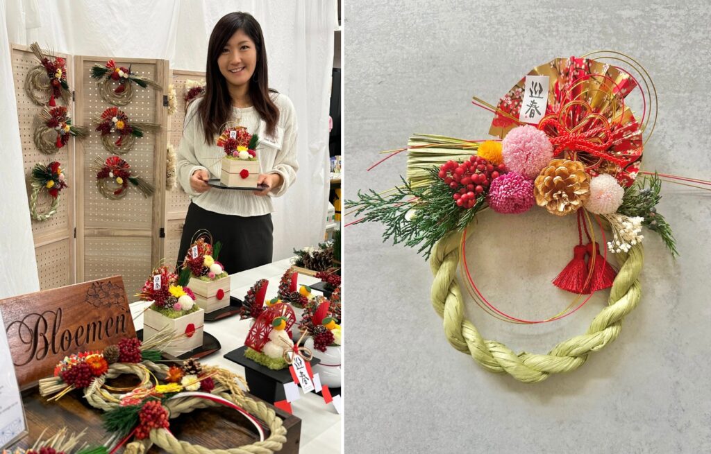 As the pandemic restrictions were lifted, Yuri resumed in-person activities, hosting seasonal workshops such as Christmas wreath-making and New Year’s kadomatsu arrangements. She also opened a stall at a farmers’ market, and collaborated with a local plant store to sell her floral creations for a limited time. Through word of mouth and social media, her business flourished, leading to invitations for corporate events and home studio sessions.
